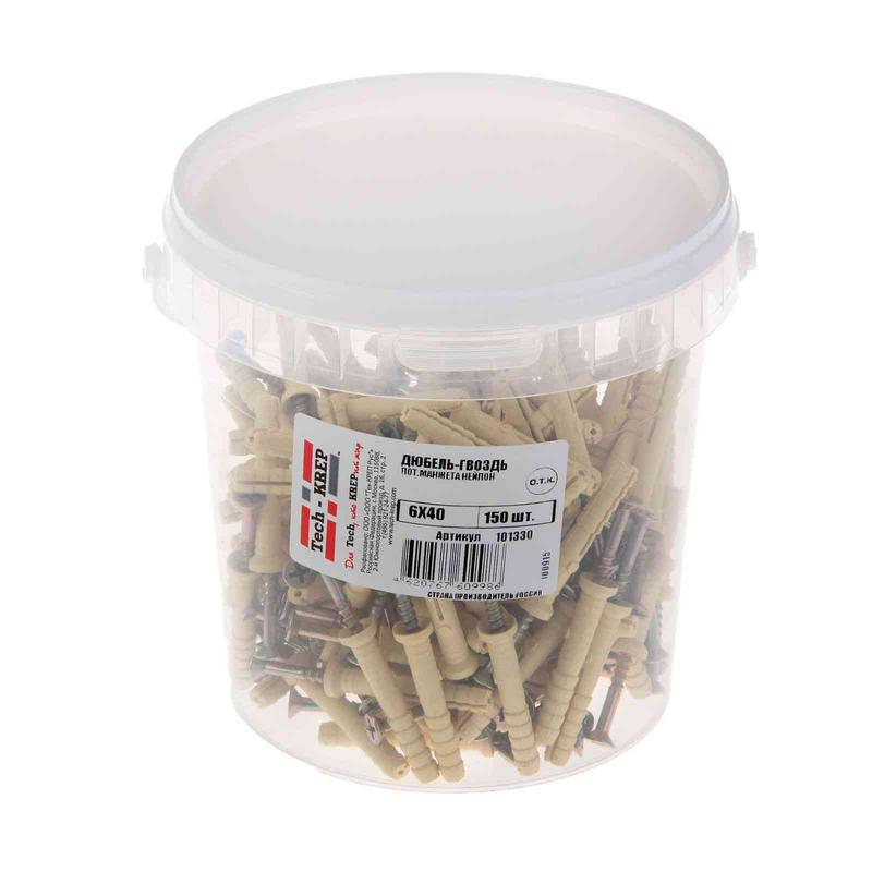 Дюбель-гвоздь 6K40 пот. манжета (нейлон) (уп.150шт) Tech-KREP 101330