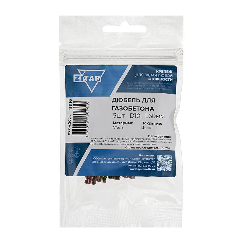 111116 | Дюбель для газобетона 10х60 (уп.5шт) Tech-Krep/Zitar