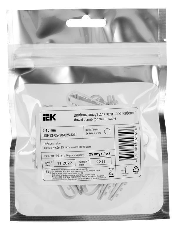 UDH13-05-10-025-K01 | Дюбель-хомут 5-10мм для круглого кабеля нейлон бел. (уп.25шт) IEK