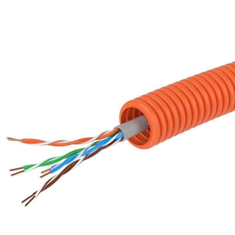 7EU916100 | Электротруба ПНД гибкая гофрированная d16мм с кабелем витая пара 5EU/UTP нг(А)-HF (уп.100м) оранж. DKC
