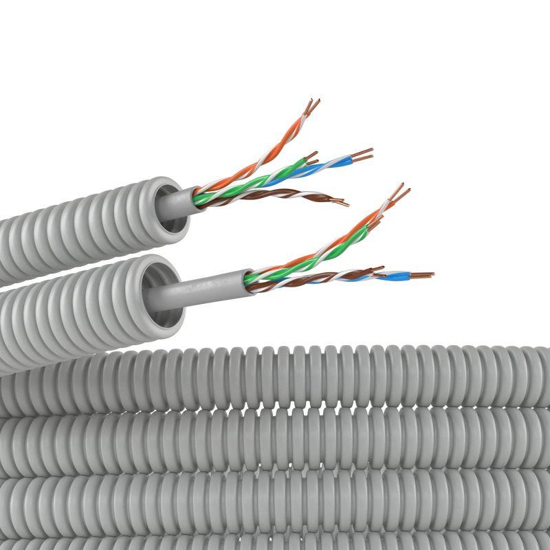 9EU91650 | Электротруба ПВХ гибкая гофрированная d16мм с кабелем витая пара 5EU/UTP нг(А)-HF (уп.50м) сер. DKC