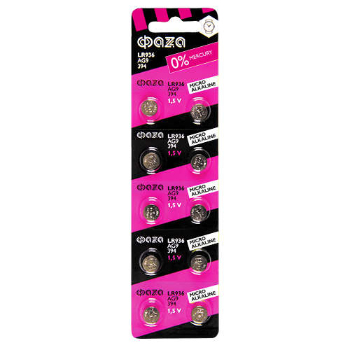 5002708 | Элемент питания алкалиновый "таблетка" LR45/LR936/AG9/G9 1.5В BL-10 (уп.10шт) ФАZА