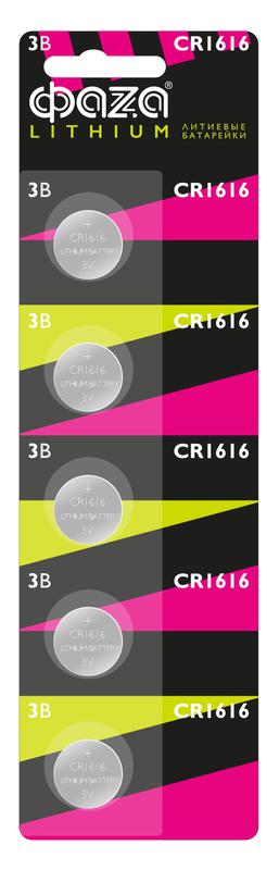 Элемент питания литиевый CR1616 3В BL-5 (блист.5шт) ФАZА 5027916