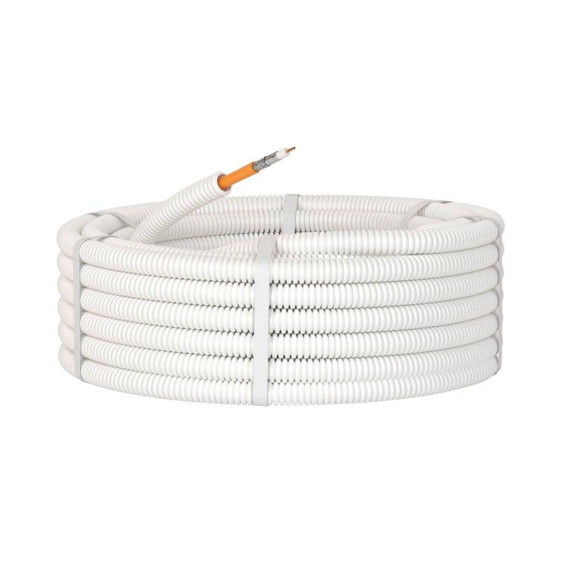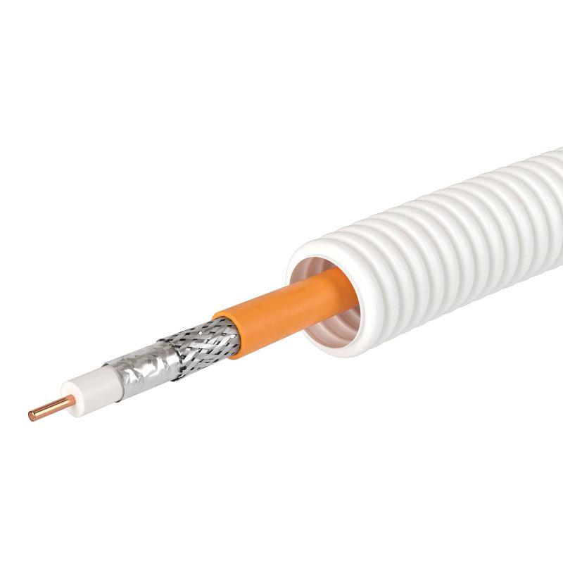 Элетротруба и из ПЛЛ не содержит галогенов гибкая гофрированная d20мм с коаксиальным кабелем SAT нг(А)-HF (уп.100м) бел. DKC 8VE820100HF