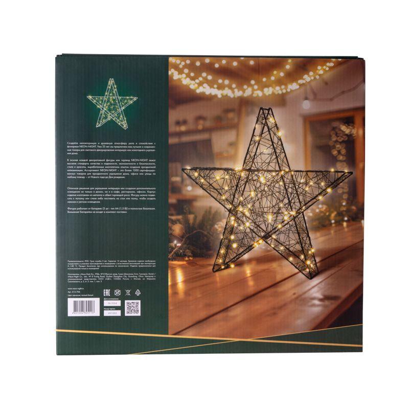 513-706 | Фигура Металлическая 3D "Звезда" 35см питание 3хAA (не в компл.) тепл. бел. Neon-Night