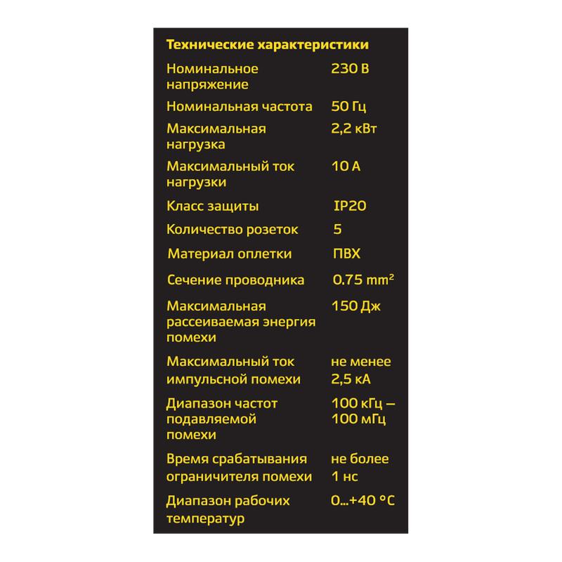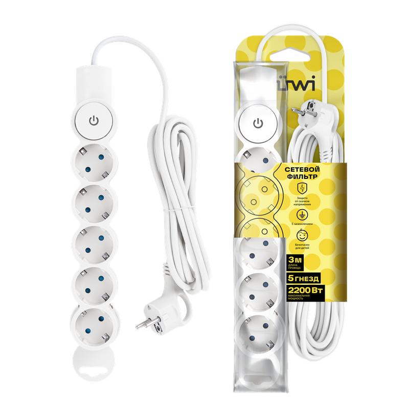 32576 5 | Фильтр сетевой 5х3м с/з со шторками с выкл. 2200Вт 10А бел. Duwi