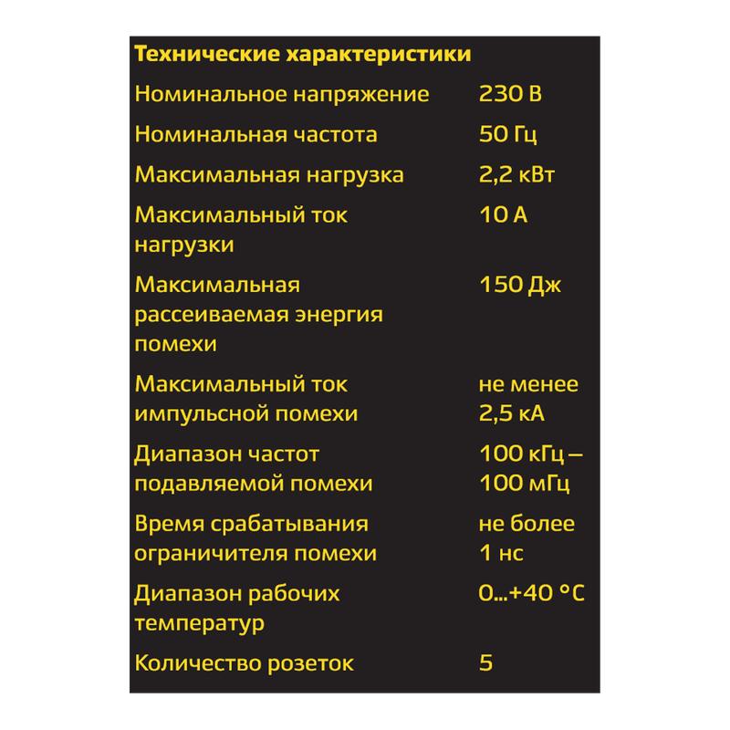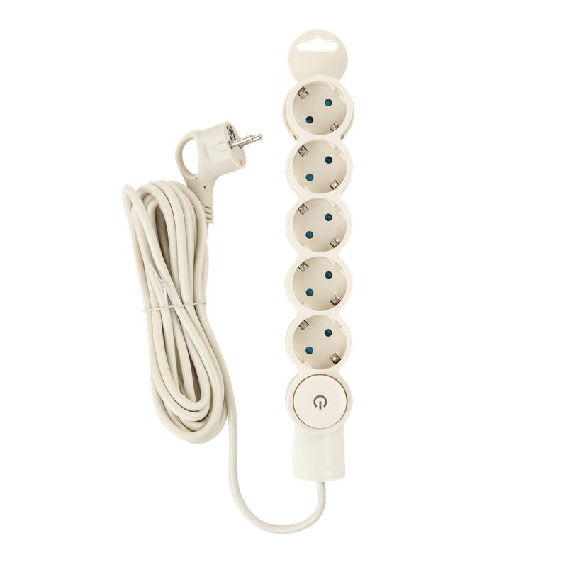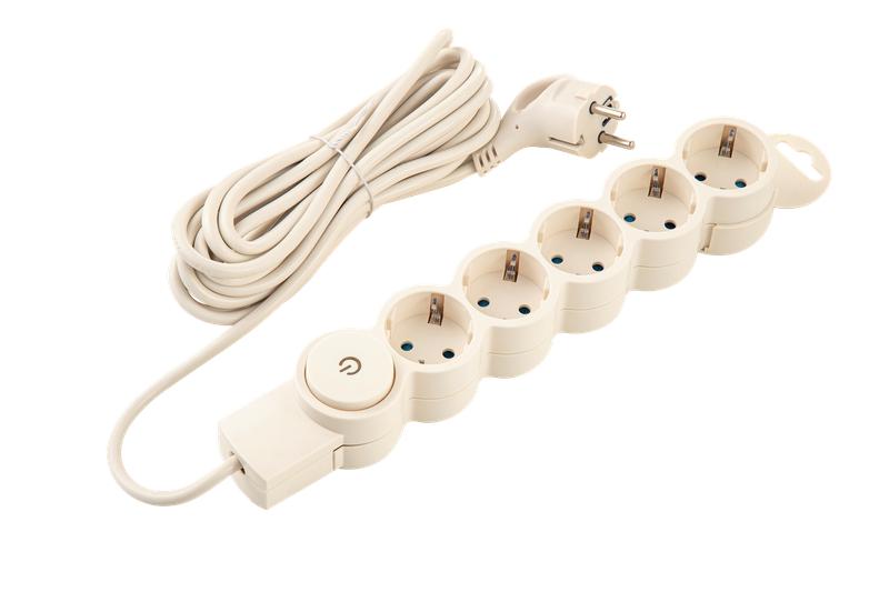 32573 4 | Фильтр сетевой 5х5м с/з с выкл 2кВт 10А/2 сл. кость Duwi