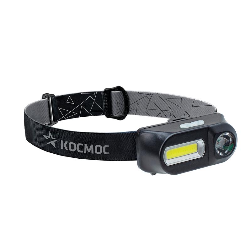 KocH3WDLith | Фонарь аккумуляторный налобный XPE 3Вт + COB 3Вт сменный аккум. 1.2А.ч КОСМОС