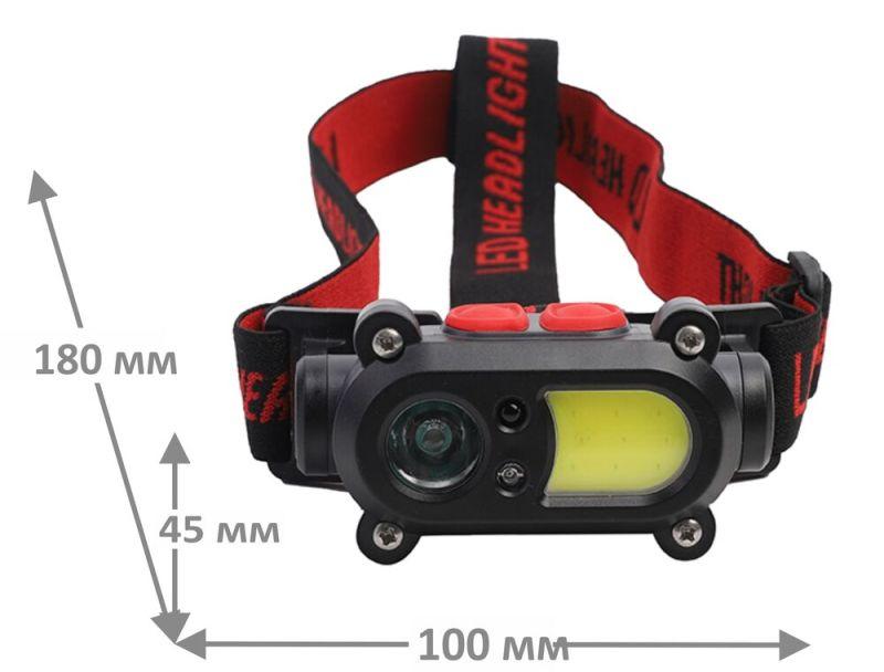 Фонарь аккумуляторный налобный 3.7В карбон 2 LED 3Вт 15 режимов сенсор MicroUSB бокс LED53418 Camelion 15746
