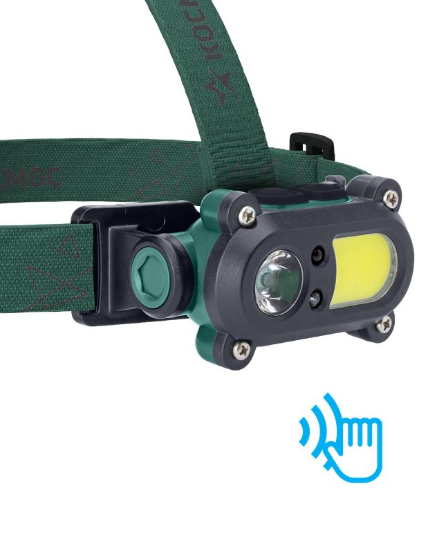 KOC502Lit | Фонарь аккумуляторный налобный сенсорный 3Вт LED+3Вт COB LED с коллиматорной линзой Li-ion 18650 1200мА.ч корпус ABS-пластик USB-шнур регулируемый эласт. ремешок КОСМОС