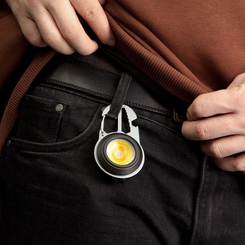 Благодаря миниатюрным размерам фонарь-брелок легко закрепить на ключах, рюкзаке или сумке, чтобы он всегда был под рукой. Надежная фиксация обеспечивается благодаря карабину.