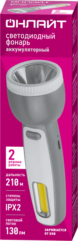 90894 | Фонарь светодиодный ручной 90 894 OPT-CP08-ACCU Li-Ion 800мА.ч 3.7В 2 режима (луч кемпинг) ОНЛАЙТ