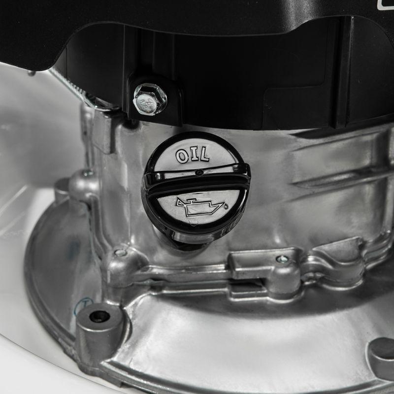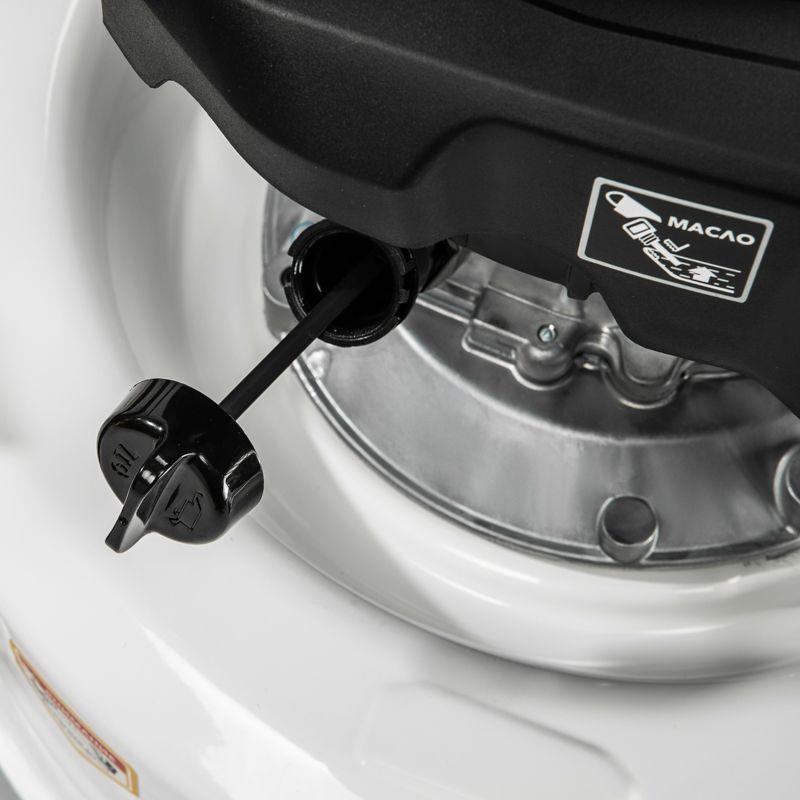 Быстрозажимные эксцентриковые фиксаторы позволяют быстро сложить газонокосилку для хранения.