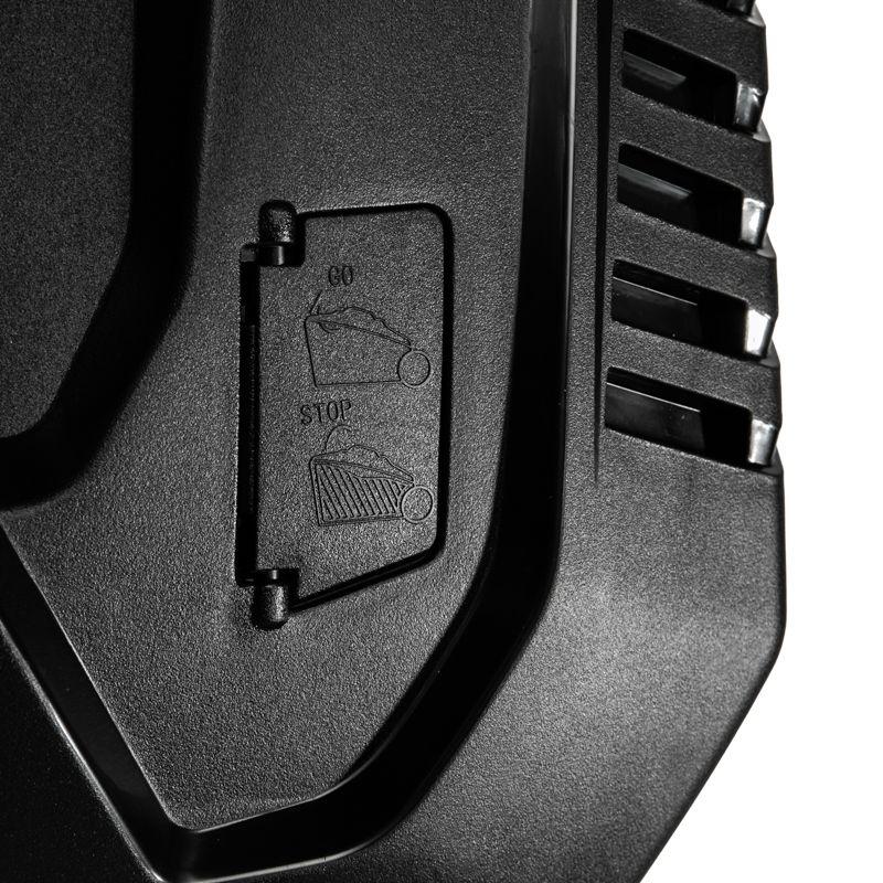Газонокосилка обладает несколькими режимами работы: боковой выброс травы, сбор травы в специальный травосборник и выброс травы под деку. Предусмотрена функция мульчирования, при которой срезанная трава мелко измельчается и распределяется по поверхности газона для его удобрения.