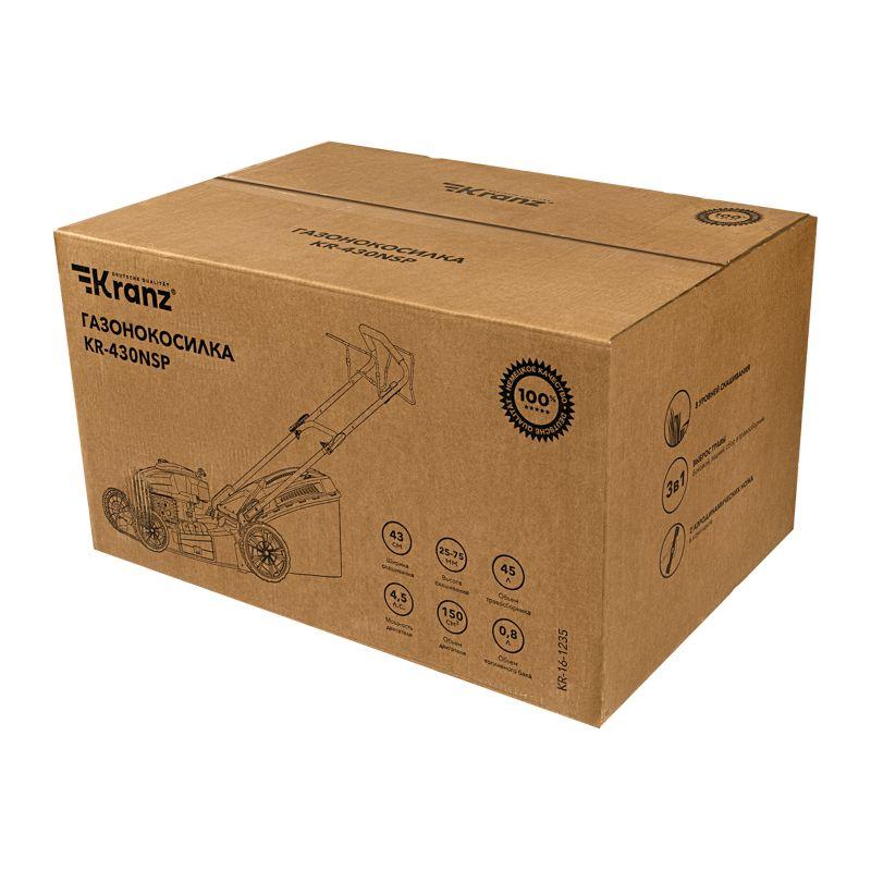KR-16-1235 | Газонокосилка бензиновая KR-430NSP несамоходная 150куб.см 43см Kranz