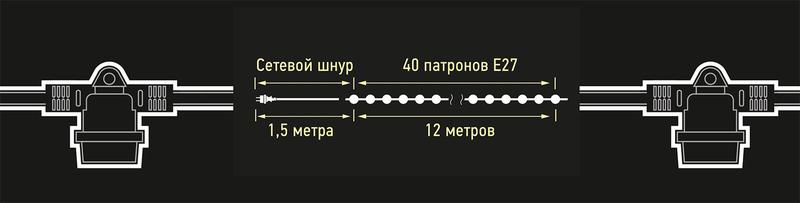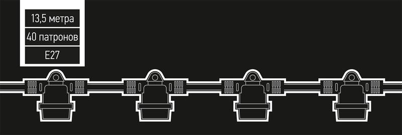 5040564 | Гирлянда уличная "Белт-лайт" PBL-S40/L12+1.5 Black E27 IP65 12м 40ламп 1.5м шнур соедин. в линию max750Вт (лампы не в компл.; возможно использов. с фитолампами в теплице) Pro JazzWay A