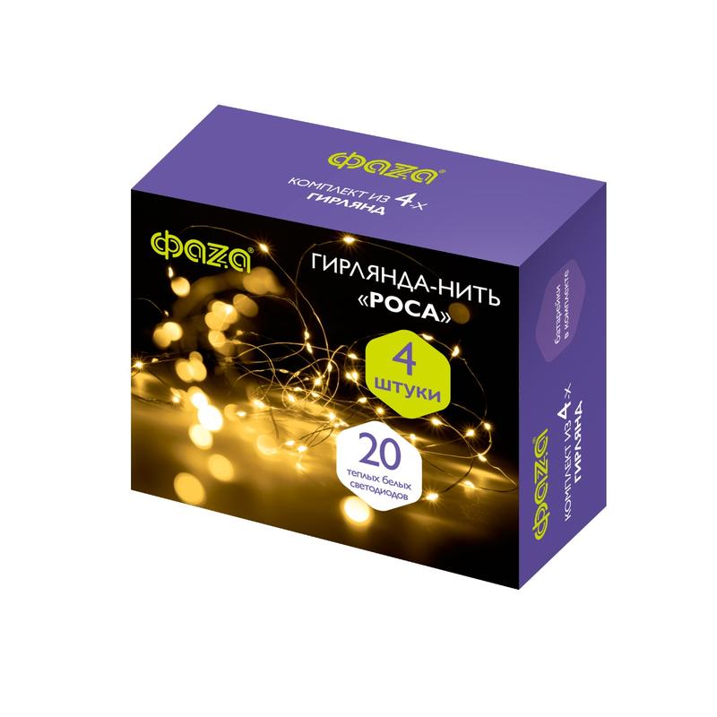 5048034 | Гирлянда DC-G05-20YS4 20LED 2xCR2032(в компл.) желт. (уп.4шт) ФАZА