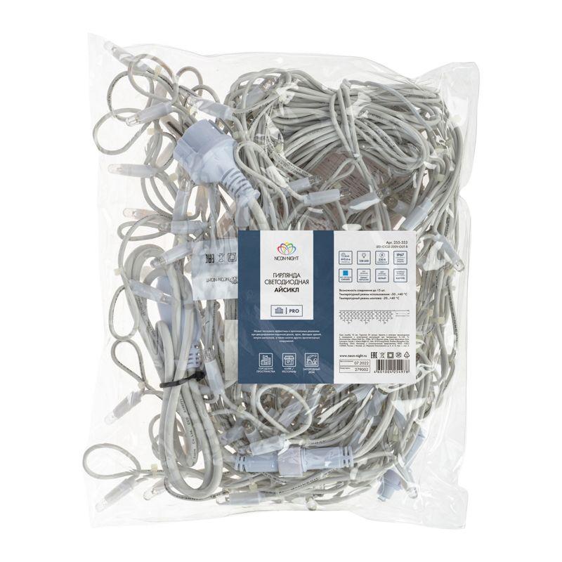 255-353 | Гирлянда светодиодная "Айсикл" (бахрома) 4х0.6м 128LED син. 10Вт 230В IP67 эффект мерцания провод бел. каучук (нужен шнур питания 315-001) Neon-Night