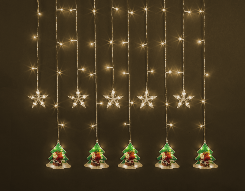 95027 | Гирлянда светодиодная "Бахрома" "Звезды и елки" 95 027 NGF-D037-04 3х0.6м WW IP20 Navigator
