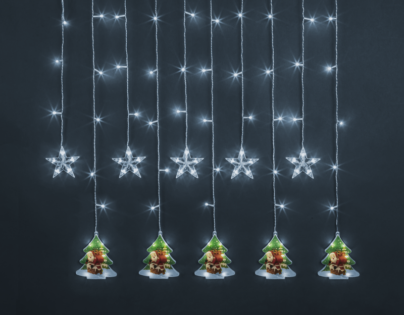 95028 | Гирлянда светодиодная "Бахрома" "Звезды и елки" 95 028 NGF-D037-05 3х0.6м CW IP20 Navigator