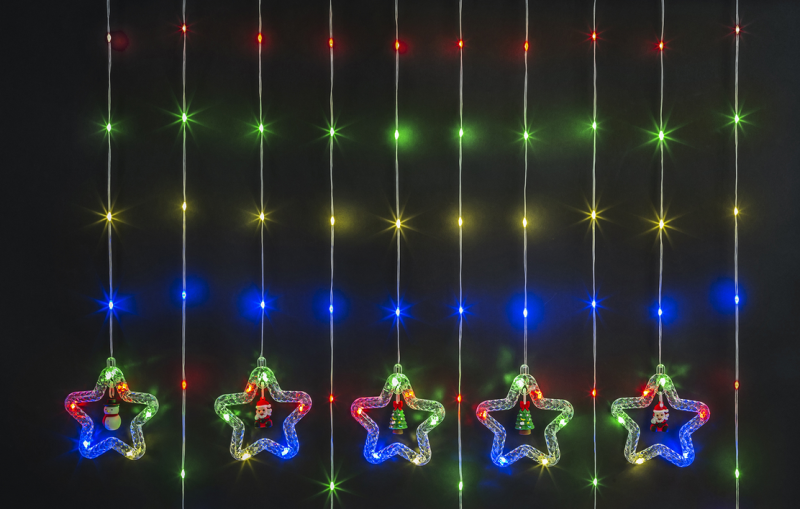 95014 | Гирлянда светодиодная "Бахрома" "Звезды и фигурки" 95 014 NGF-D035-03 3х0.6м RGBY IP20 NAVIGATOR