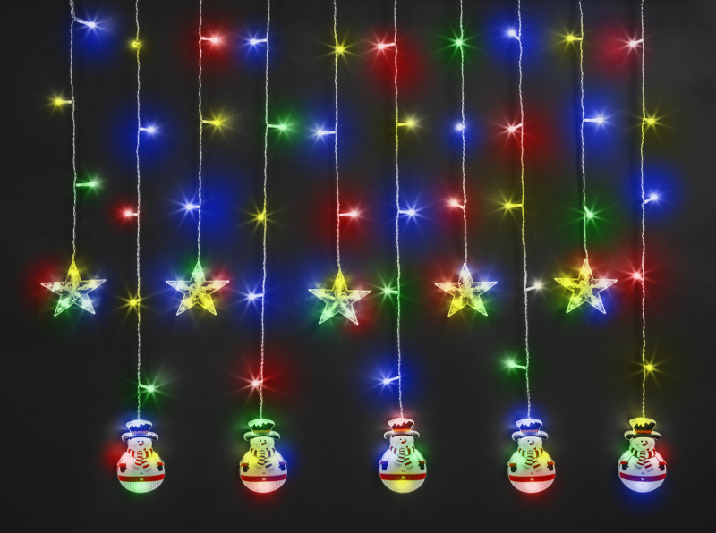 95026 | Гирлянда светодиодная "Бахрома" "Звезды и снеговики" 95 026 NGF-D037-03 3х0.6м RGBY IP20 Navigator
