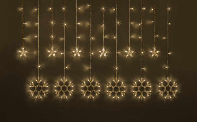 95005 | Гирлянда светодиодная "Бахрома" "Звезды и снежинки" 95 005 NGF-D032-01 2.5х1м WW IP20 Navigator