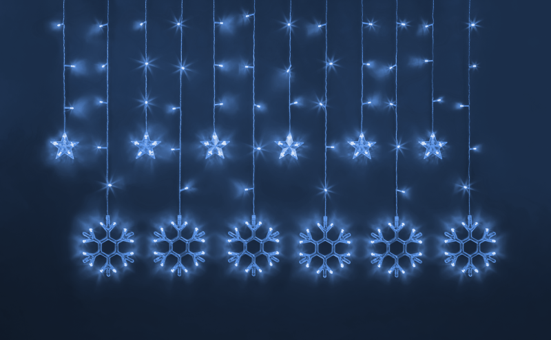 95122 | Гирлянда светодиодная "Бахрома" "Звезды и снежинки" 95 122 NGF-D032-03 2.5х1м Blue IP20 Navigator