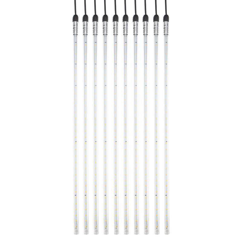 Гирлянда представляет собой комплект из 10 прозрачных пластиковых трубок, расположенных на расстоянии 100 см друг от друга.