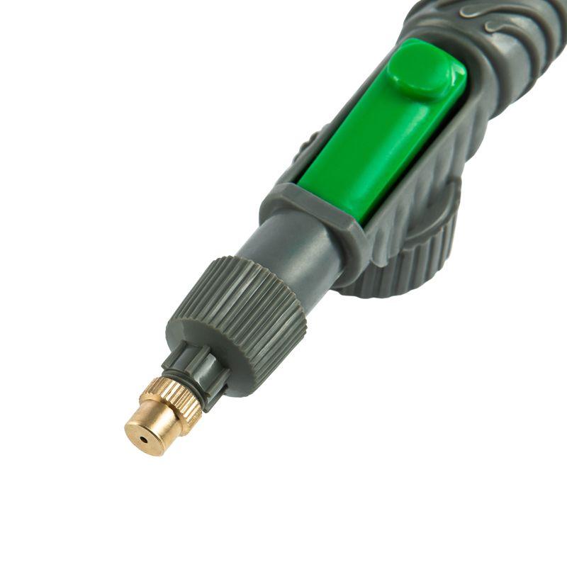 После того, как вы накачали помпу, достаточно нажать на кнопку, и процесс распыления начнется. Это значительно упрощает использование и снижает нагрузку на руку.