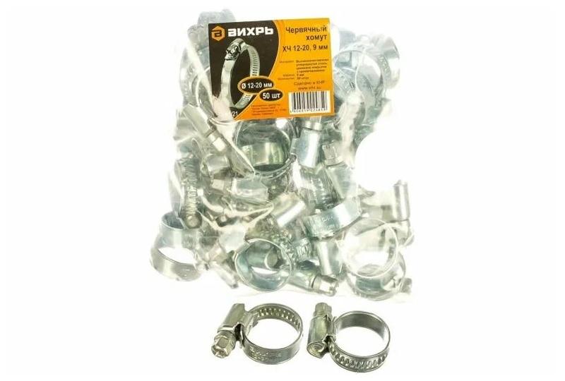 Хомут металлический червячный 12-20 9мм (уп.50шт) Вихрь 73/9/1/21