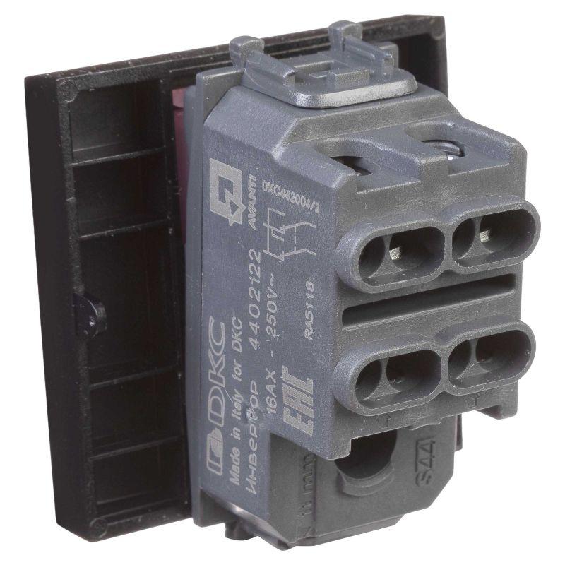 4402122 | Инвертор модульный 1-кл. 2п 2мод. Avanti "Черный квадрат" 16А IP20 черн. DKC