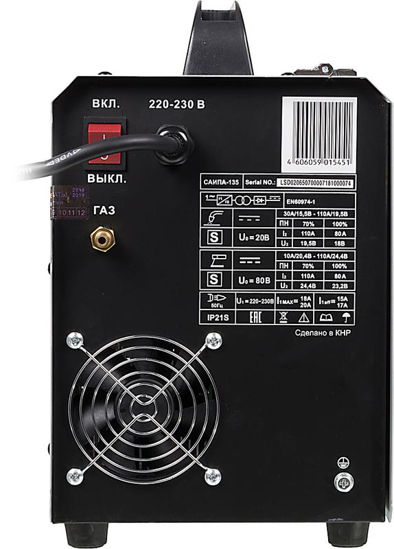 Товар Инвертор сварочный полуавтомат. САИПА-135 110А d0.6-08мм сварочной провол.220В IP21 Ресанта 65/7 доступен с доставкой по г. Санкт-Петербург, Ленинградской области и территории РФ, или самовывозом.