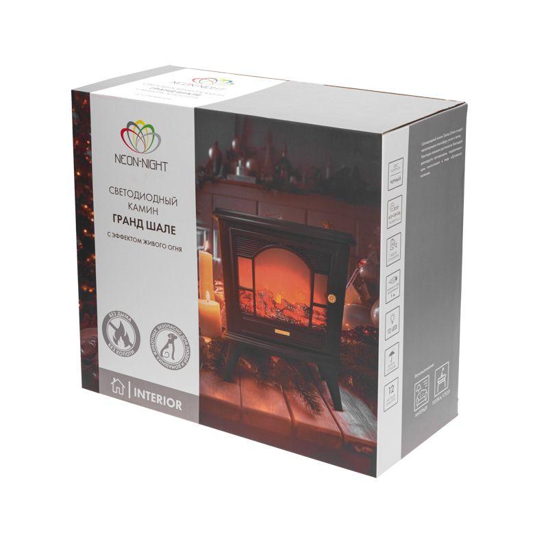 511-024 | Камин светодиодный "Гранд Шале" с эффектом живого огня 45х18х56см работает от батареек 3хС (в комплект не входят) или от USB (в комплекте) черн. Neon-Night