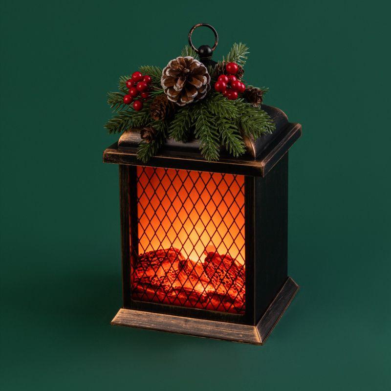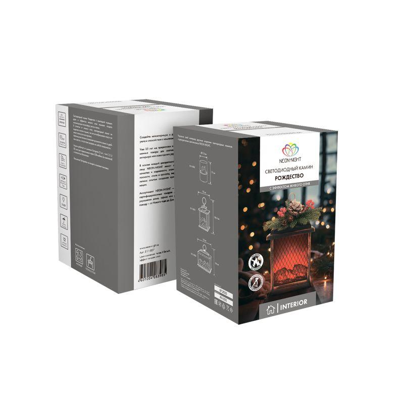 511-027 | Камин светодиодный Рождество с эффектом живого огня 15х14х26см батарейки 2хС (не в комплекте) и USB бронзовый Neon-Night