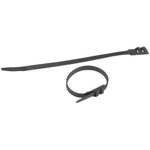 Двойной горизонтальный замок в конструкции хомута обеспечивает надежную фиксацию и экономит пространство. Зубцы в механизме и по всей длине ленты ориентированы в противоположных направлениях, что предотвращает случайное выскальзывание ленты из паза.