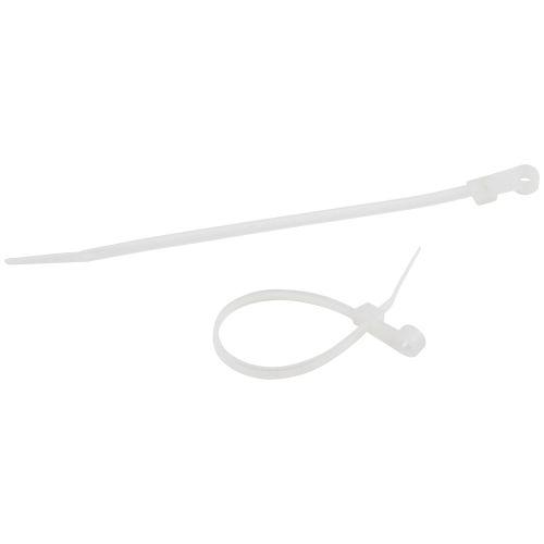 - Наличие монтажного отверстия на конце стяжки позволяет произвести быстрый монтаж хомута к рабочей поверхности с помощью саморезов или гвоздей.