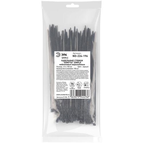 Хомут кабельный Simple 2.5х150 NO-224-196 черн. (уп.100шт) Эра Б0066029