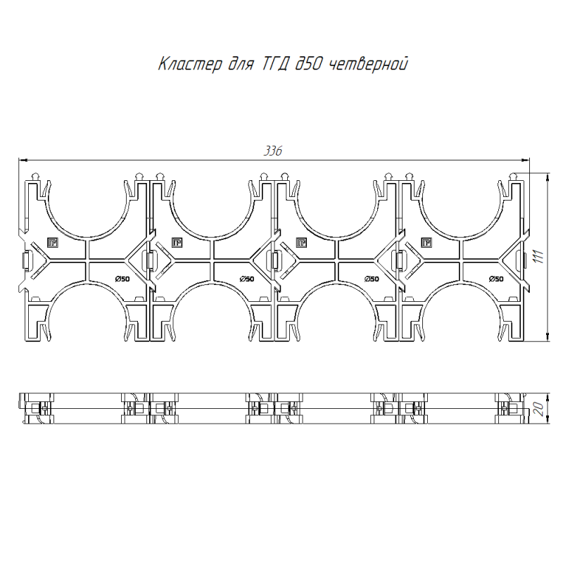 PR13.02587 | Кластер четверной двухсторон. для двустен. труб d50мм Промрукав