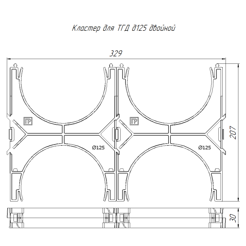 PR13.02572 | Кластер двойной двухсторонний для двустен. труб d125мм Промрукав