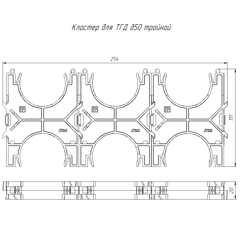 PR13.02577 | Кластер двойной двухсторонний для двустен. труб d50мм Промрукав