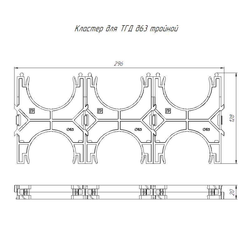 PR13.02578 | Кластер тройной двухсторон. для двустен. труб d63мм Промрукав