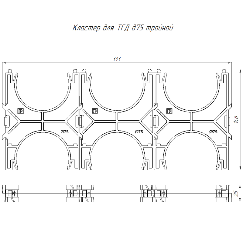 PR13.02579 | Кластер тройной двухсторон. для двустен. труб d75мм Промрукав