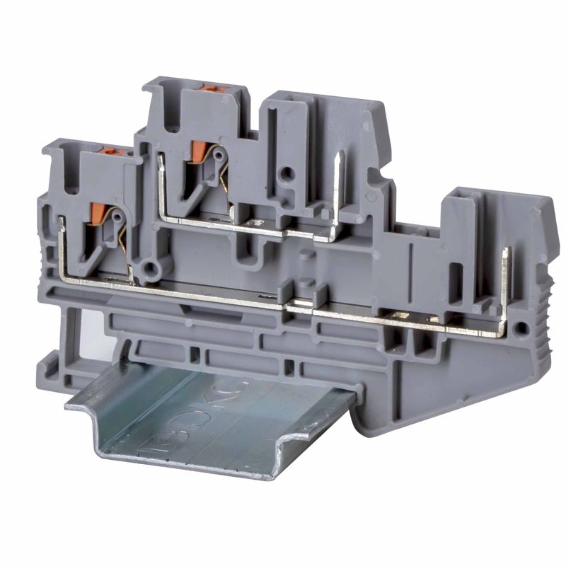 VPRTT-2.5-2P | Клемма двухуровневая проходная под вставной штекер зажим push-in; 4 точки подключения; 2.5кв.мм сер. DKC