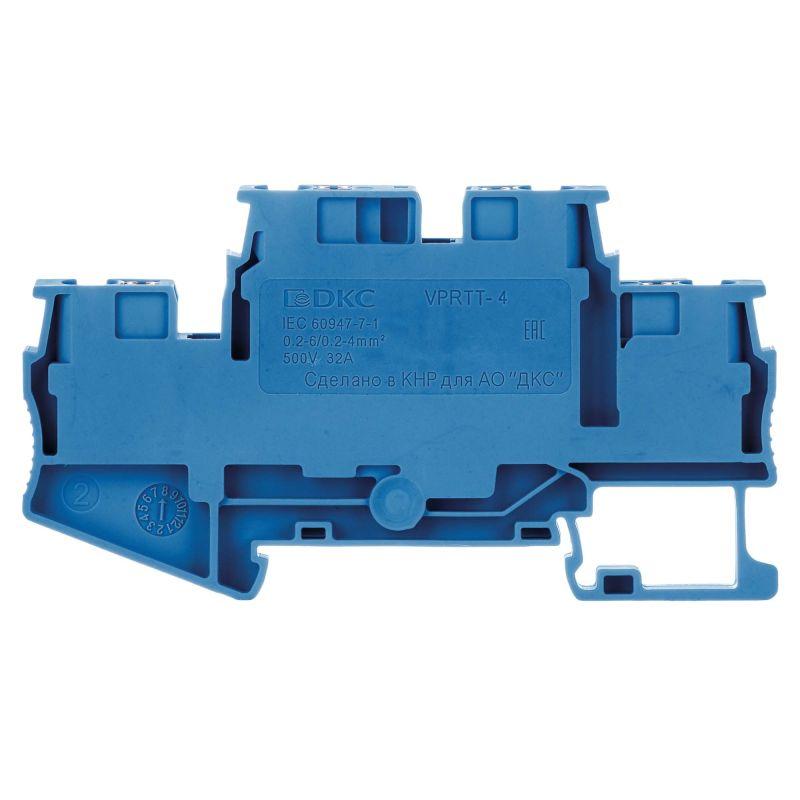 VPRTT-4-PV-BU | Клемма двухуровневая зажим push-in 4 точки подключения с перемычкой между уровнями 4кв.мм син. DKC