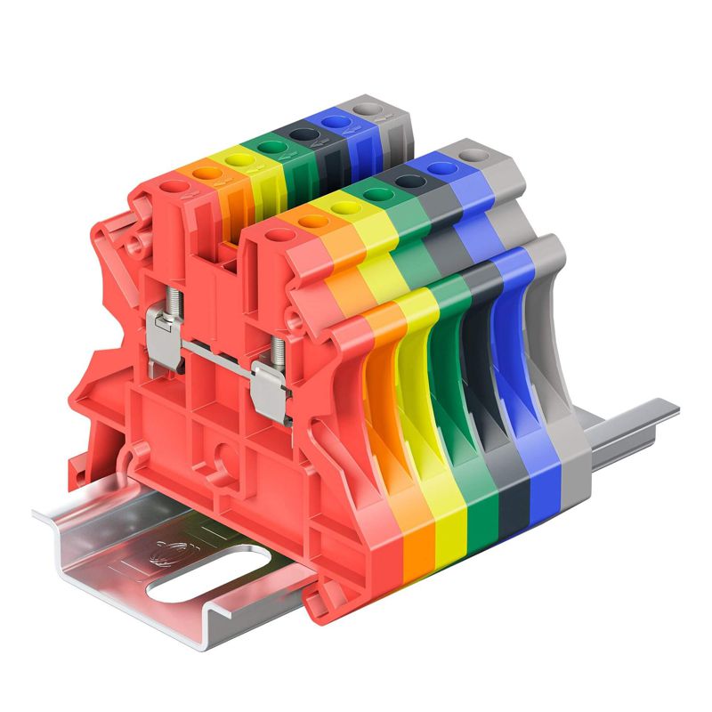Красный цвет, 2 точки подключения, 2.5 мм2. 2 канала для вставных перемычек. Габариты (В?Ш?Г) 47,5?53?5,2 мм.