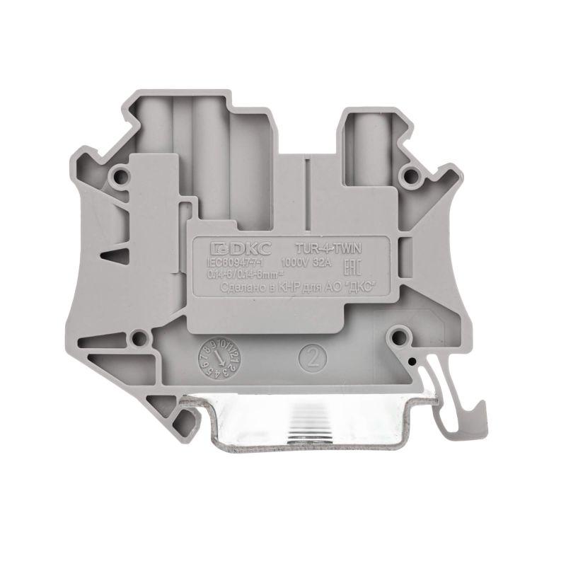 TUR-4-TWIN | Клемма проходная винтовой зажим 3 точки подключения 4кв.мм сер. DKC