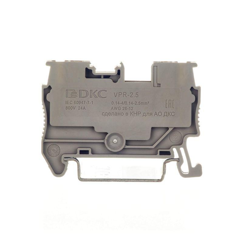 Клемма проходная зажим push-in 2 точки подключения 2.5кв.мм сер. DKC VPR-2.5-GY