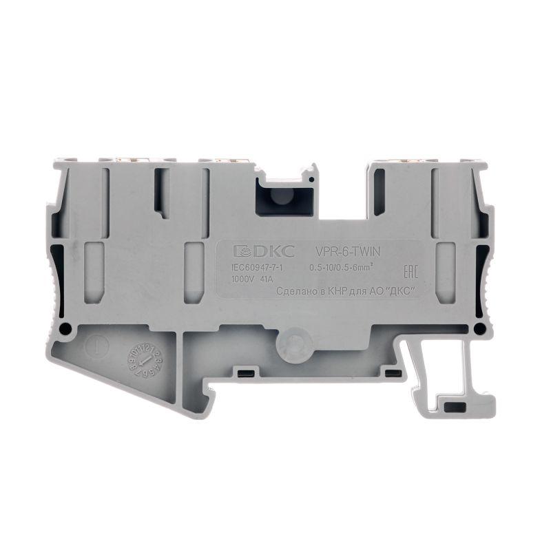 VPR-6-TWIN-GY | Клемма проходная зажим push-in 3 точки подключения 6кв.мм сер. DKC