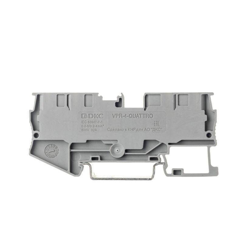 VPR-4-QUATTRO-GY | Клемма проходная зажим push-in 4 точки подключения 4кв.мм сер. DKC